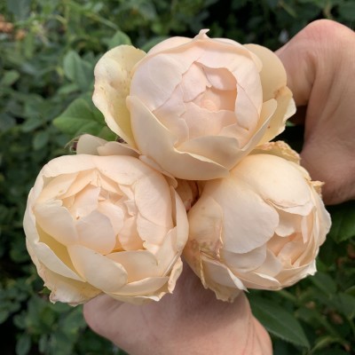 Округлые бутоны окрашены в изменчивые сливочные тона. Размер крупных, помпоновидных полумахровых цветков колеблется от 9 до 10-12 см, количество матовых бархатистых лепестков составляет 26-40. Переливчатые тона сменяются от светло-желтых, почти песочных, до светло-кремовых. Единая палитра выглядит как пастельная гамма белых, розовых и желтых оттенков. Роза обладает интенсивным приятным ароматом с цветочными, мирровыми, миндальными нотками и запахом абрикосового дерева. Сорт характеризуется средней морозостойкостью и способен переносить минусовые температуры до –23?C.